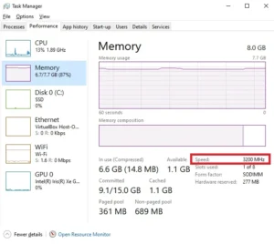 مرحله 5: در این بخش شما در گوشه سمت راست پایین صفحه، برچسب «سرعت» (Speed) را بزنید تا سرعت رم سیستم شما را نشان دهد.